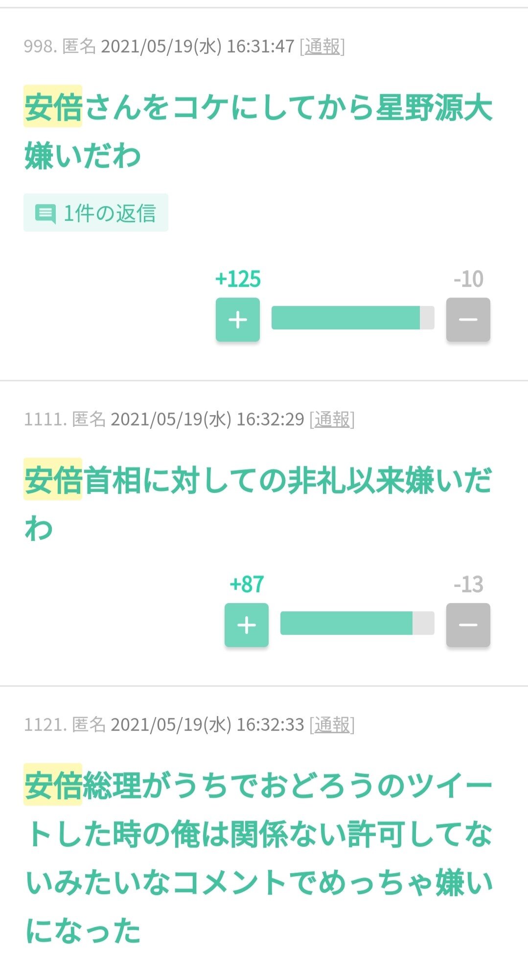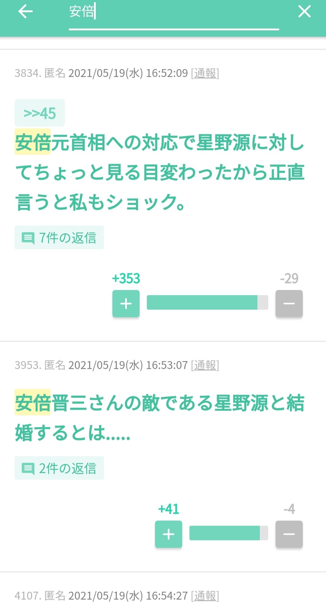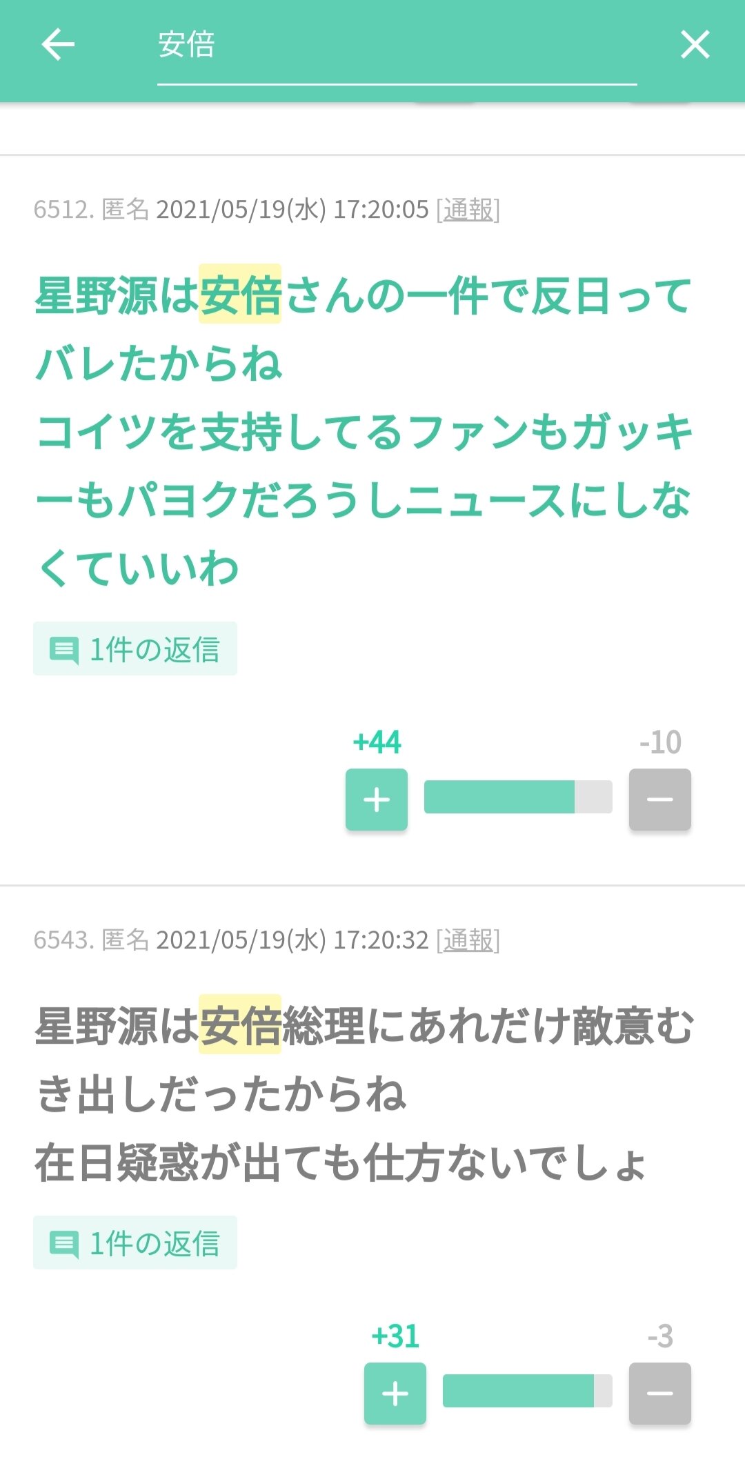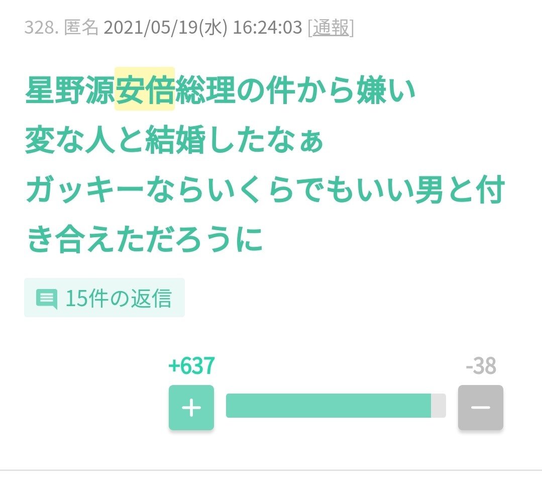 安倍ちゃん嫌いやから星野源応援するわ