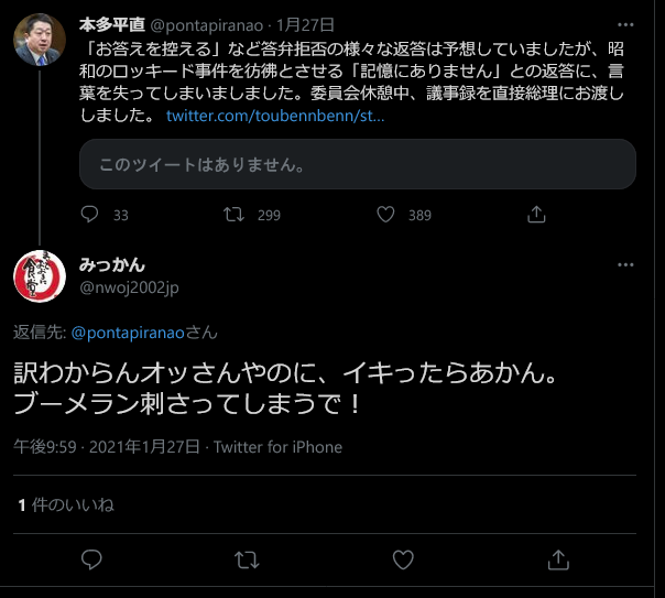本多って枝野の元政策秘書やしな。