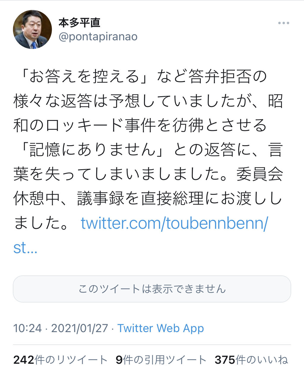 本件の何が問題なのか全く理解してなくて泣ける。