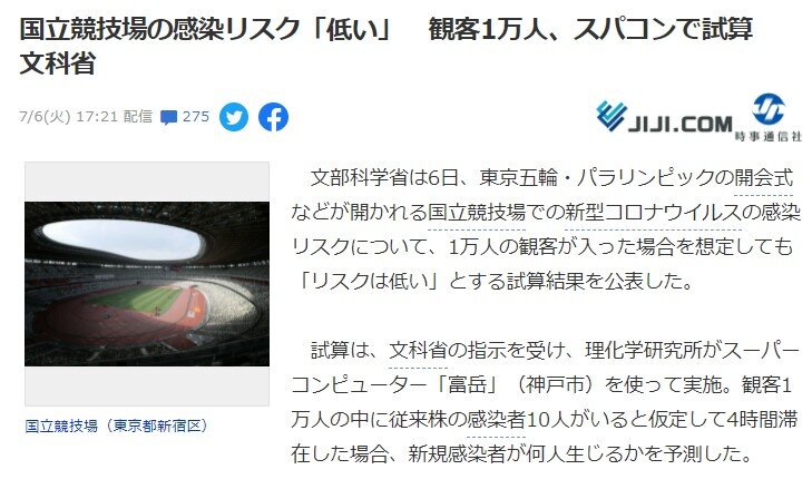 しかも観客はマスクを一瞬も外さずに、4時間と仮定した時間をずっと前を向いたまま、席から出歩きもしない前提の計算やぞ
