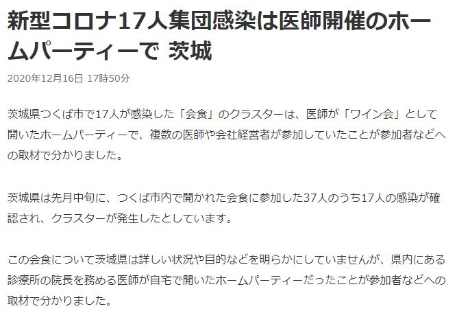 医者がワインパーティー開催して感染者出したのって茨城じゃなかった?