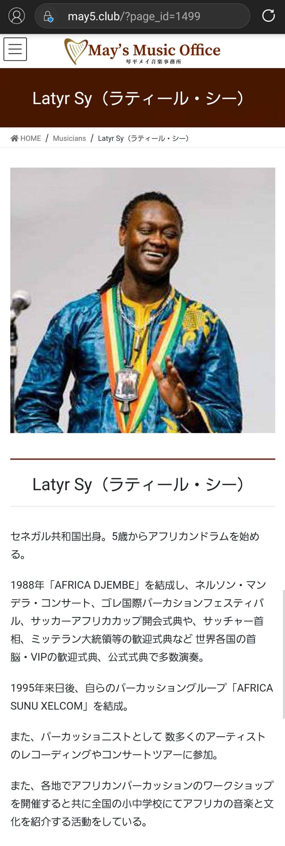 >ネルソンマンデラコンサート、ゴレ国際パーカッションフェスティバル、サッカーアフリカカップ、