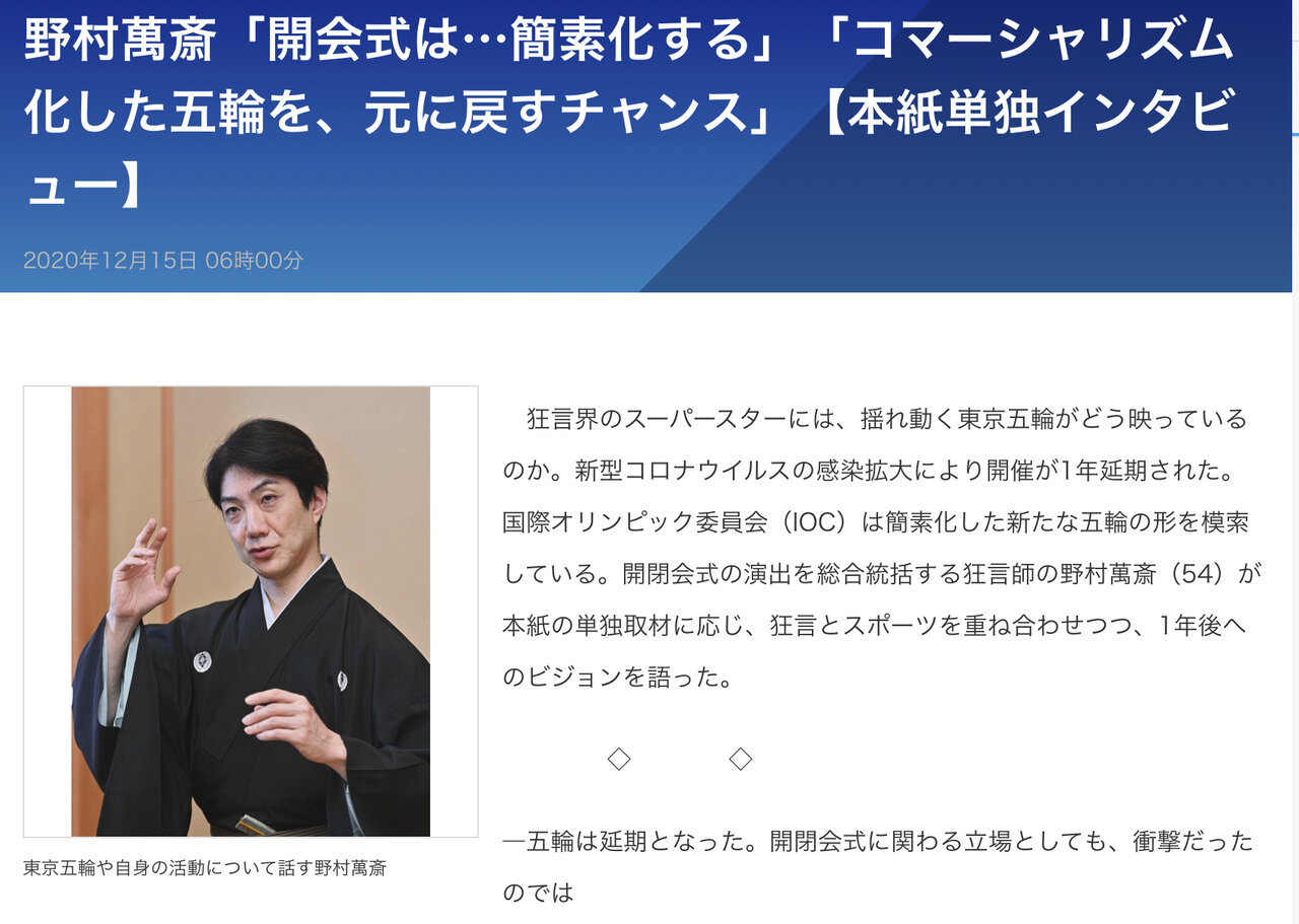 むしろスレの>>124の記事見るに今騒がれとるオリンピックの簡素化・中止の意見を出した「理事ら」の中に野村萬斎氏も含まれてる可能性もあるからなぁ
