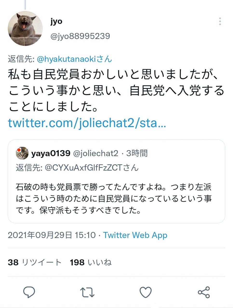 A(自民党の総裁選)の話ししてんのに急にB(ヤトウガー)って関係ない話を喋り始めたら、咎められても文句言えないと思うんだけど、それすら分からんのか…お前は日常生活で人との会話は成立してるのか心配になるわ