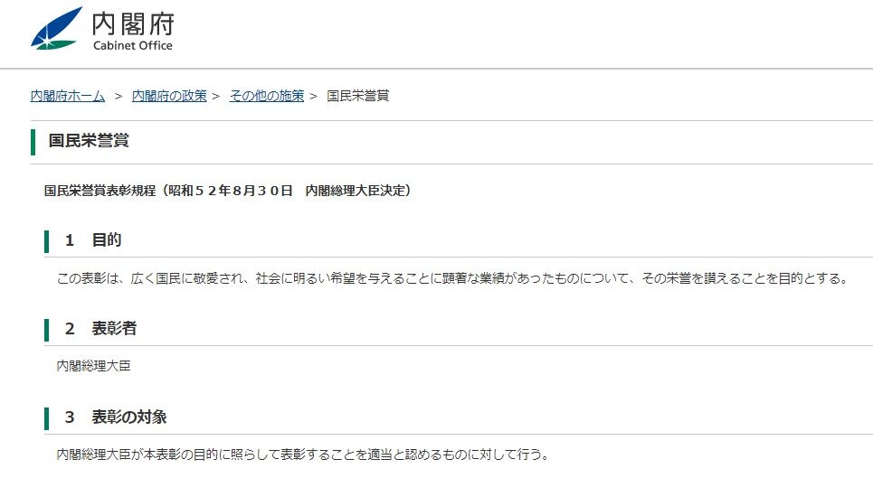 国民栄誉賞あげても政府に得ない気がするけど