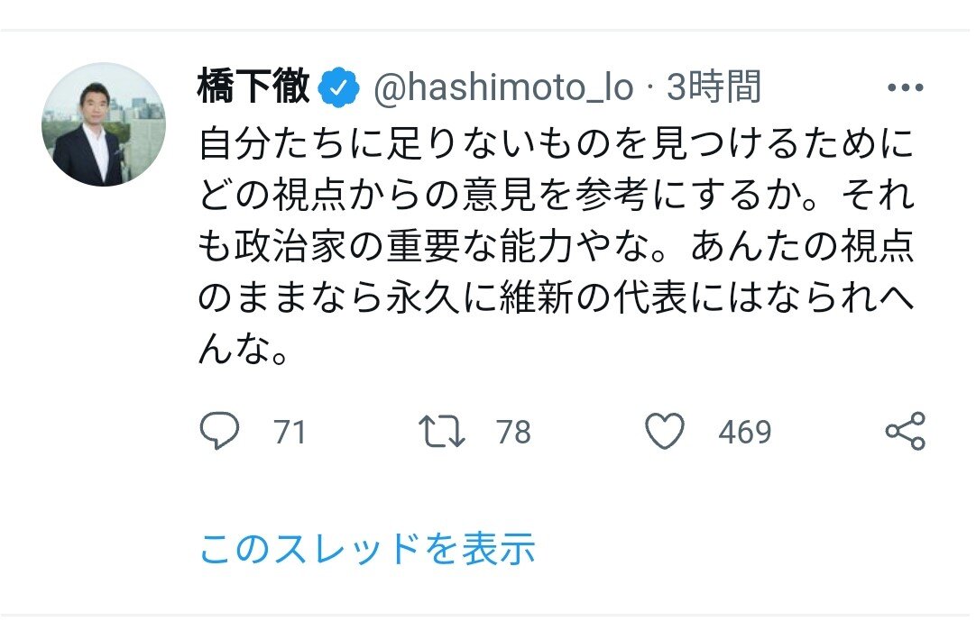 橋下さん自身が政治に文句があるなら政治家になれと言ってたのにという話じゃないんかな