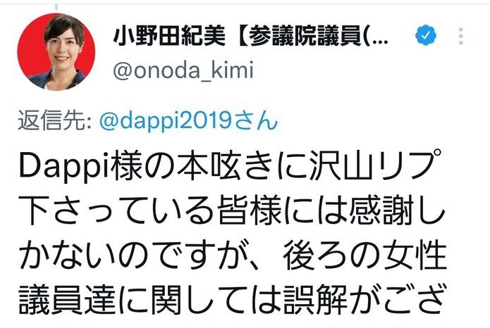 午前中から小野田議員の名前がネット上でトレンド入りしている。