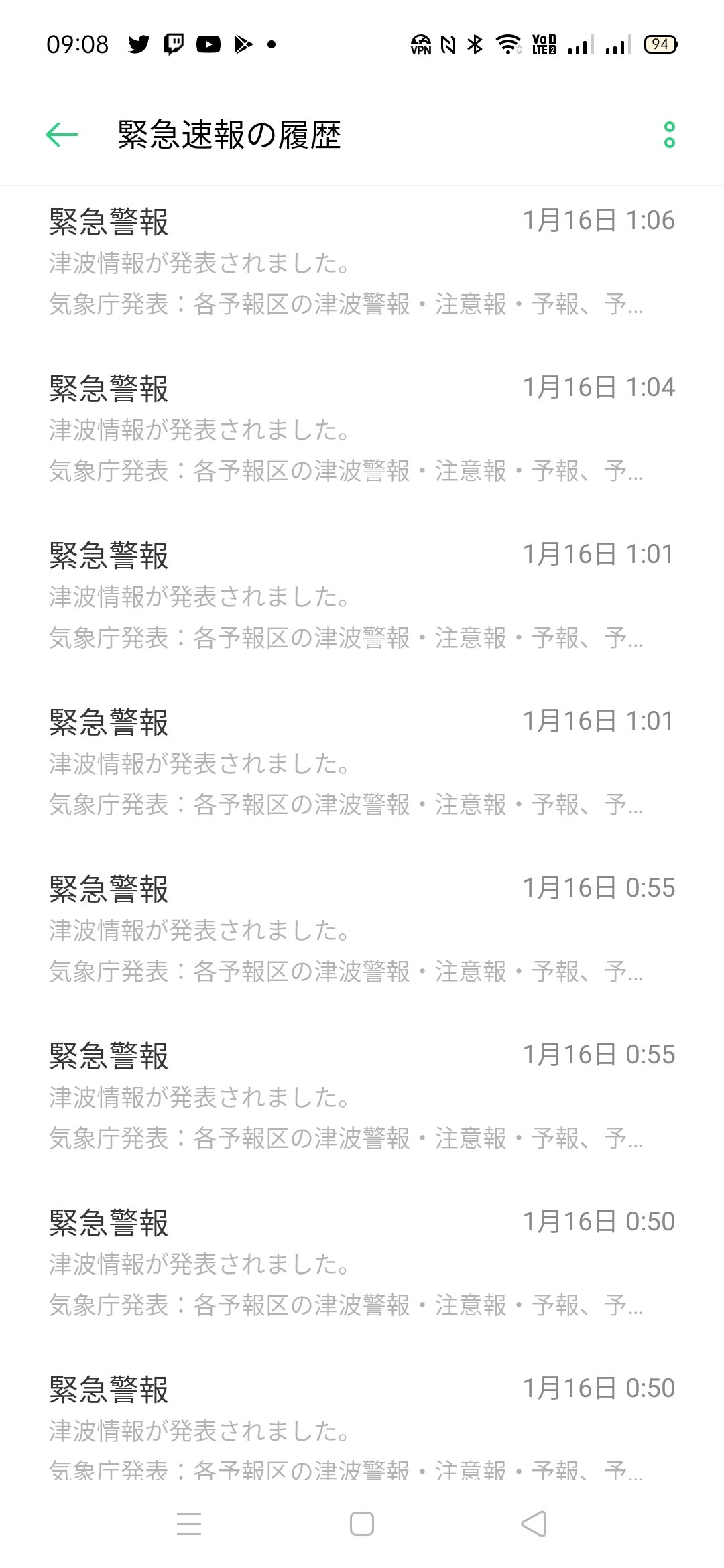海沿いやないからこのままじゃ寝れんし1時過ぎに通知切ったが、わりとひっきりなしに小さい津波が来てんのかと思ってたわ