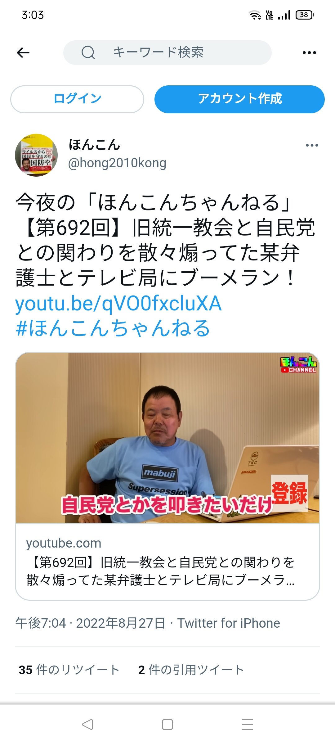 ここの書き込みでもほんこんのTweetしょっちゅう批判してるやつおるから監視組何人かいるんちゃうか?