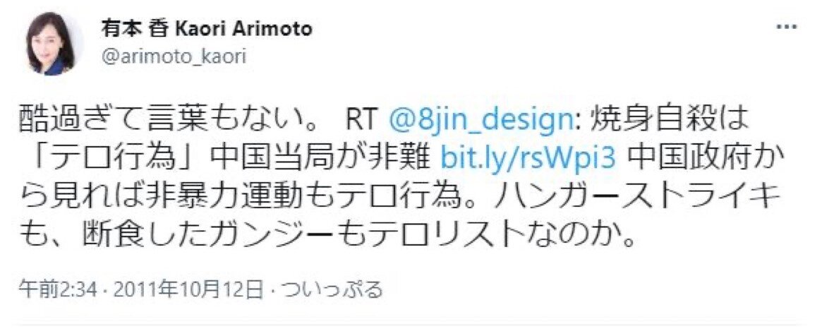 抗議の焼身自殺をテロ扱いするのは中国と同じという事実