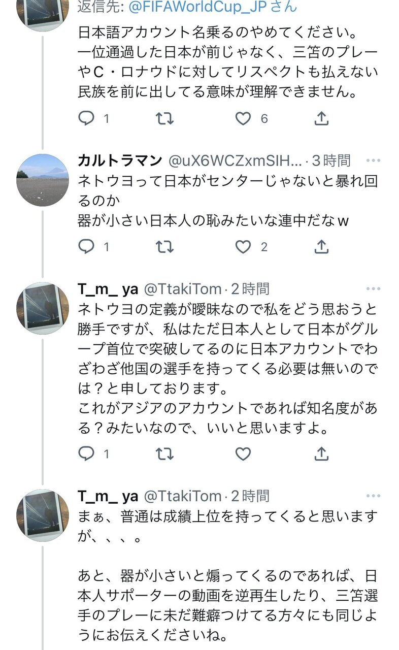 割とマジで日本人は世界中から愛されていて今回のワールドカップの主人公だと思いこんでいるやつツイッターにいるよな