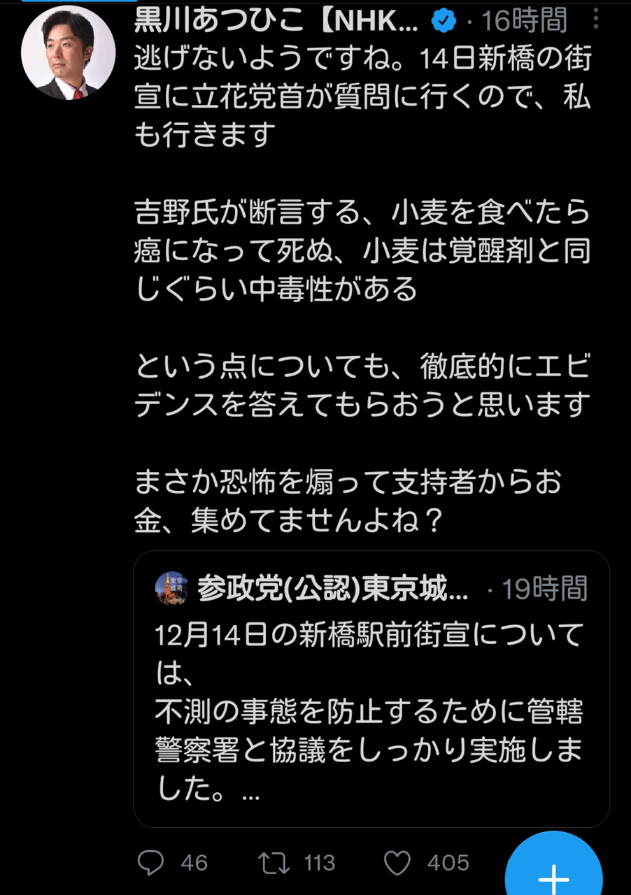 立花はともかく黒川の信者が参政党批判してるのには草生えるわ
