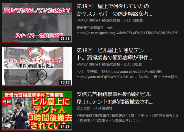 両者の説明は、弾が命中した部位に齟齬(そご)があるとも取れることから、ネットを中心に「容疑者以外にも銃撃した人物がいたのではないか」という考察につながった。