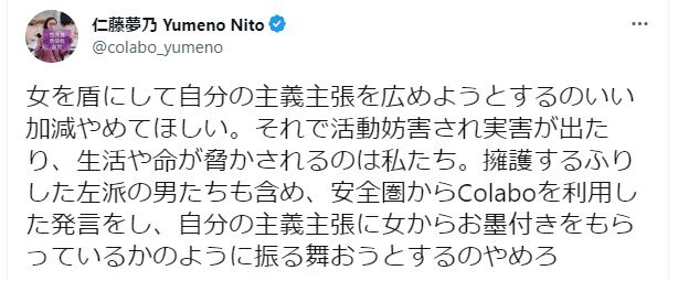 問題ないツイートなのに仁藤は文句言ってんのか