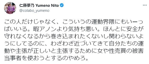そもそもコンドーム配布発狂してるバカを叩いてただけで別に仁藤を理解したわけじゃないんだよなぁ...