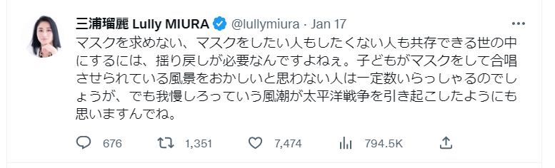 はっきりと反マスクを公言してるやろ