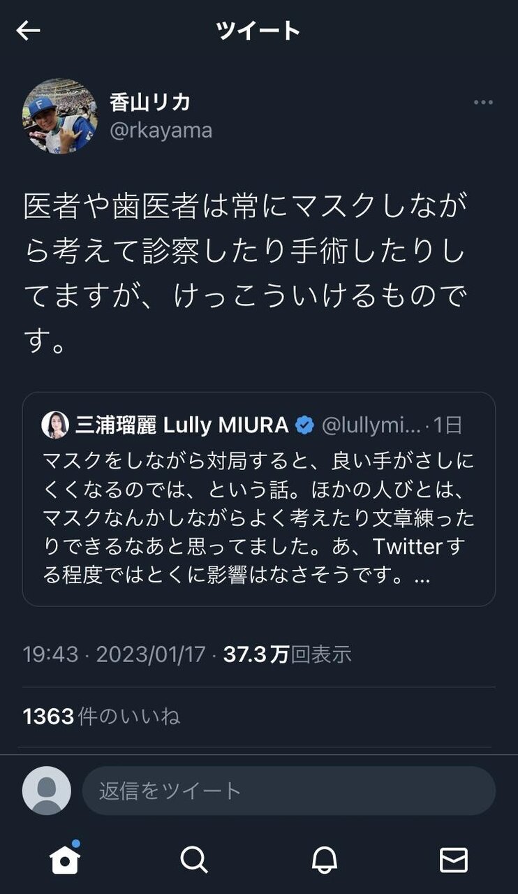 香山の発言を「医者や歯医者はマスクをつけてるんやから皆マスクつけろ!」という攻撃と受け取ったんやな