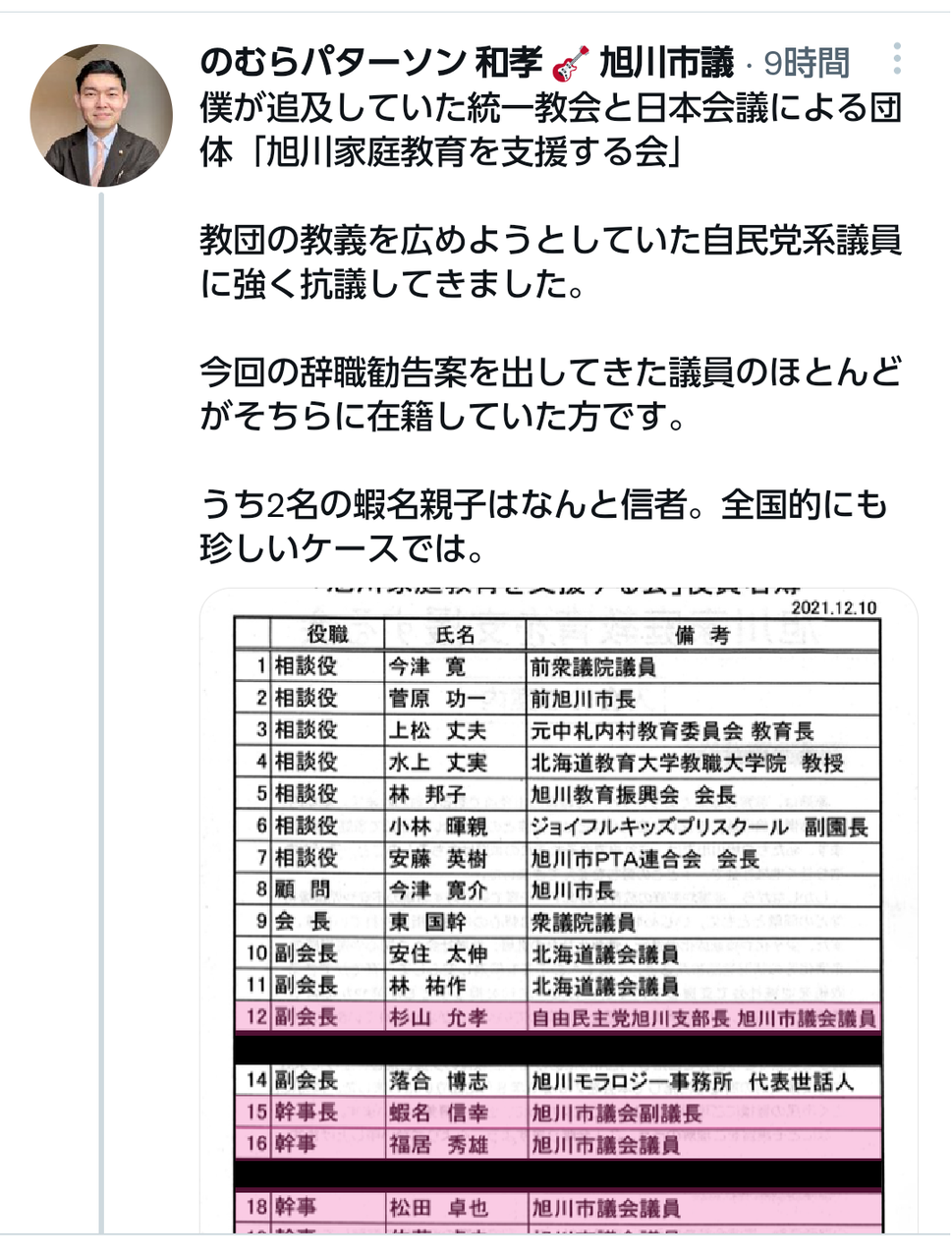 まともな旭川市民に選ばれた議員がこうやって統一批判してるんやろ