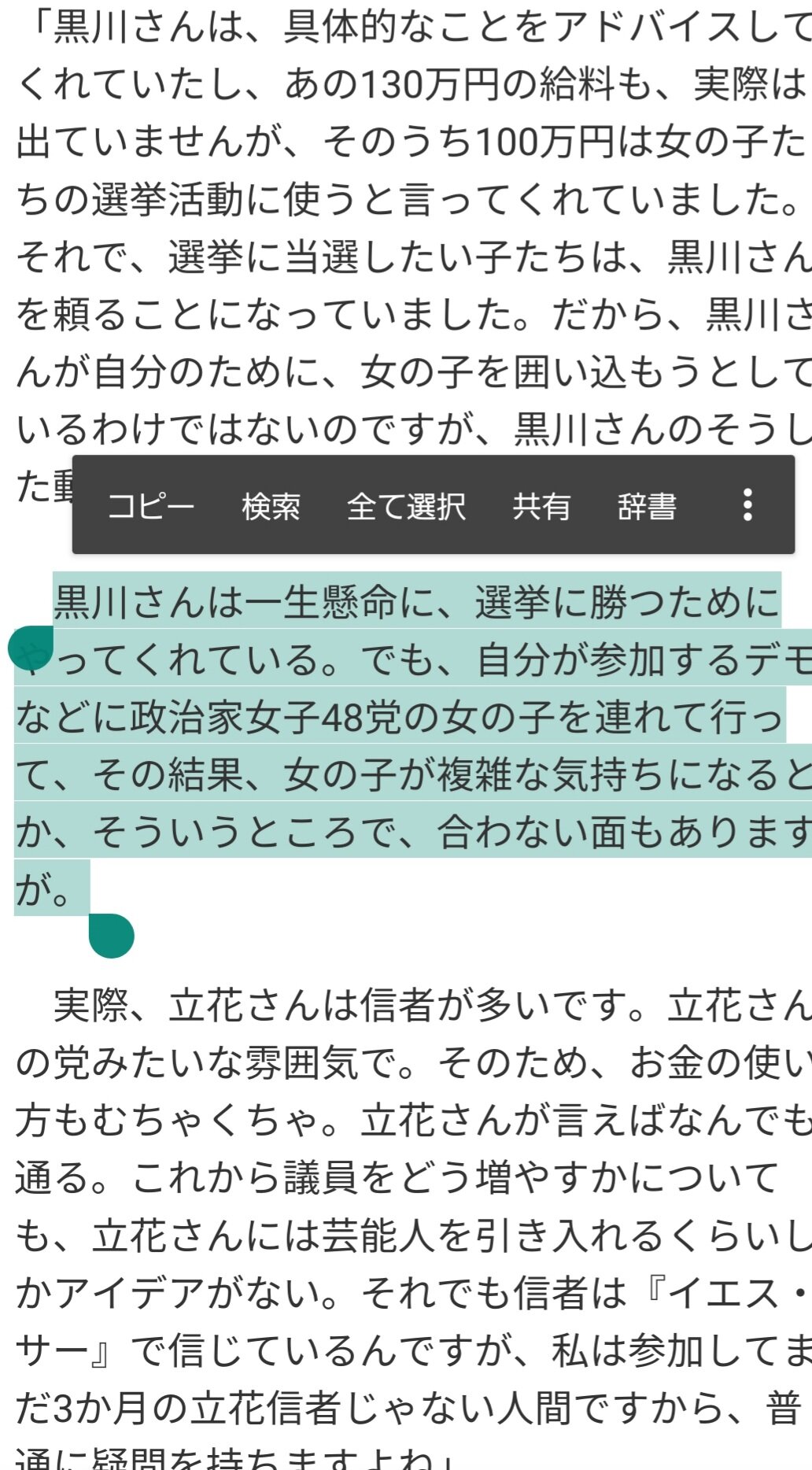 資金について不明瞭なこと自体が国政政党として問題だと思っている。
