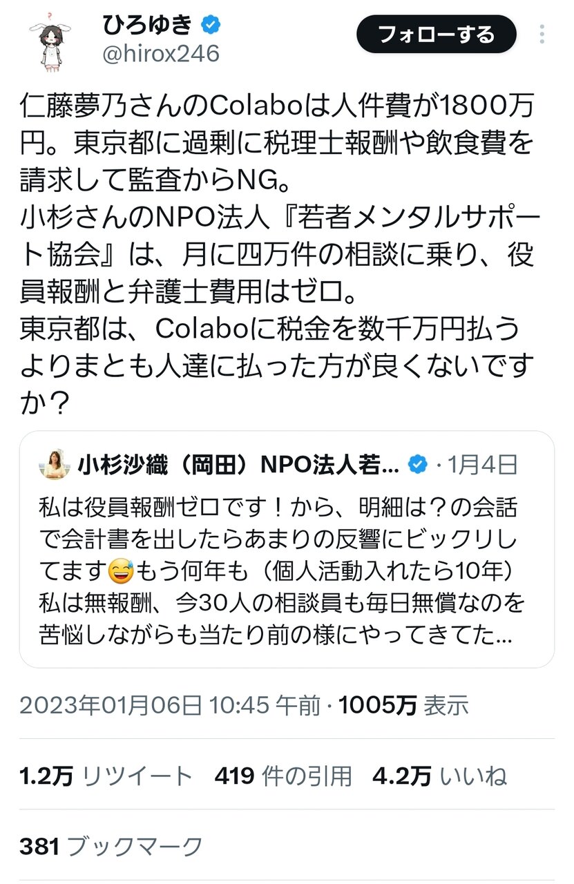 仁藤叩きでカンパやら原稿料やら票を集める奴らは最早colaboに食べさせてもろてるようなものなんよな