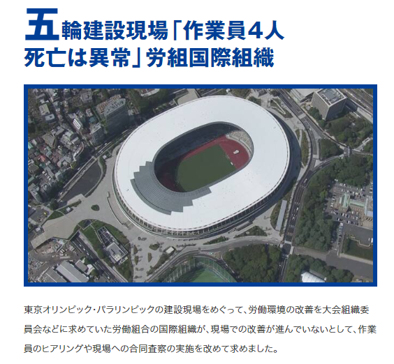 東京五輪では複数人の作業員が事故死して現場監督の過労自殺、JOCスタッフの謎の自殺もあった