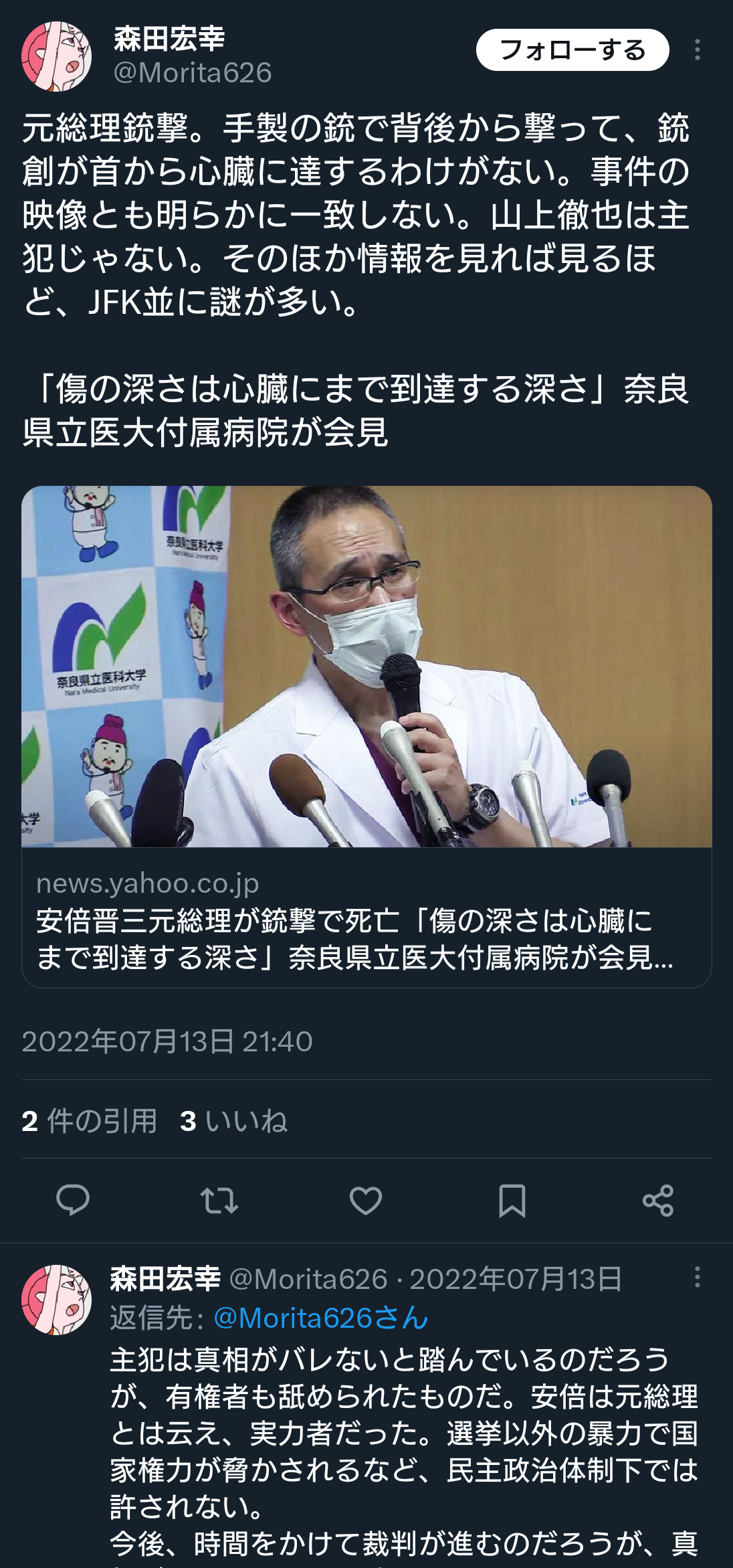 今回も犯人役含めて自演とか言ってる人ら居たし、陰謀論者って人生楽しそうだわ