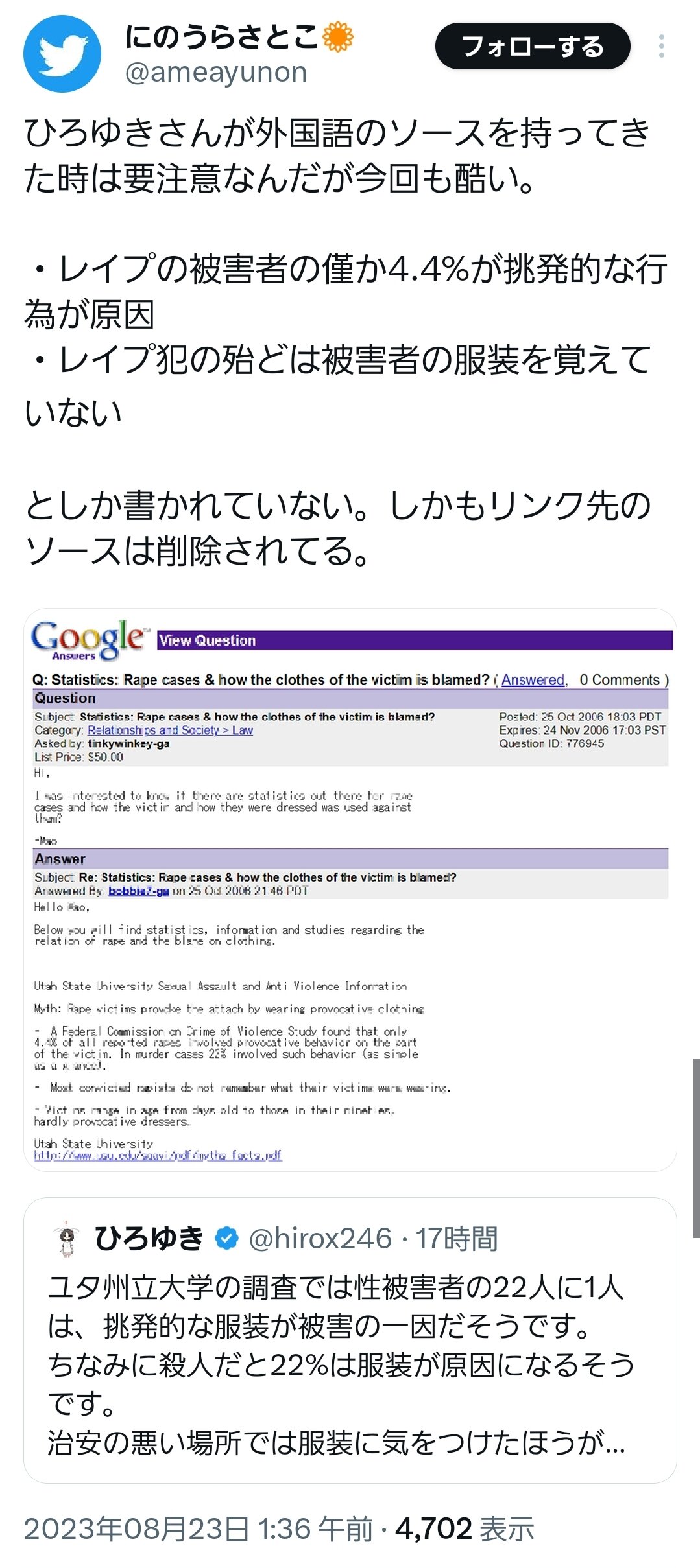 それだけの話なのになぜ皆人とは違ったことを言おうとしてセカンドレ○プに走ってしまうのか