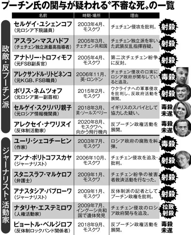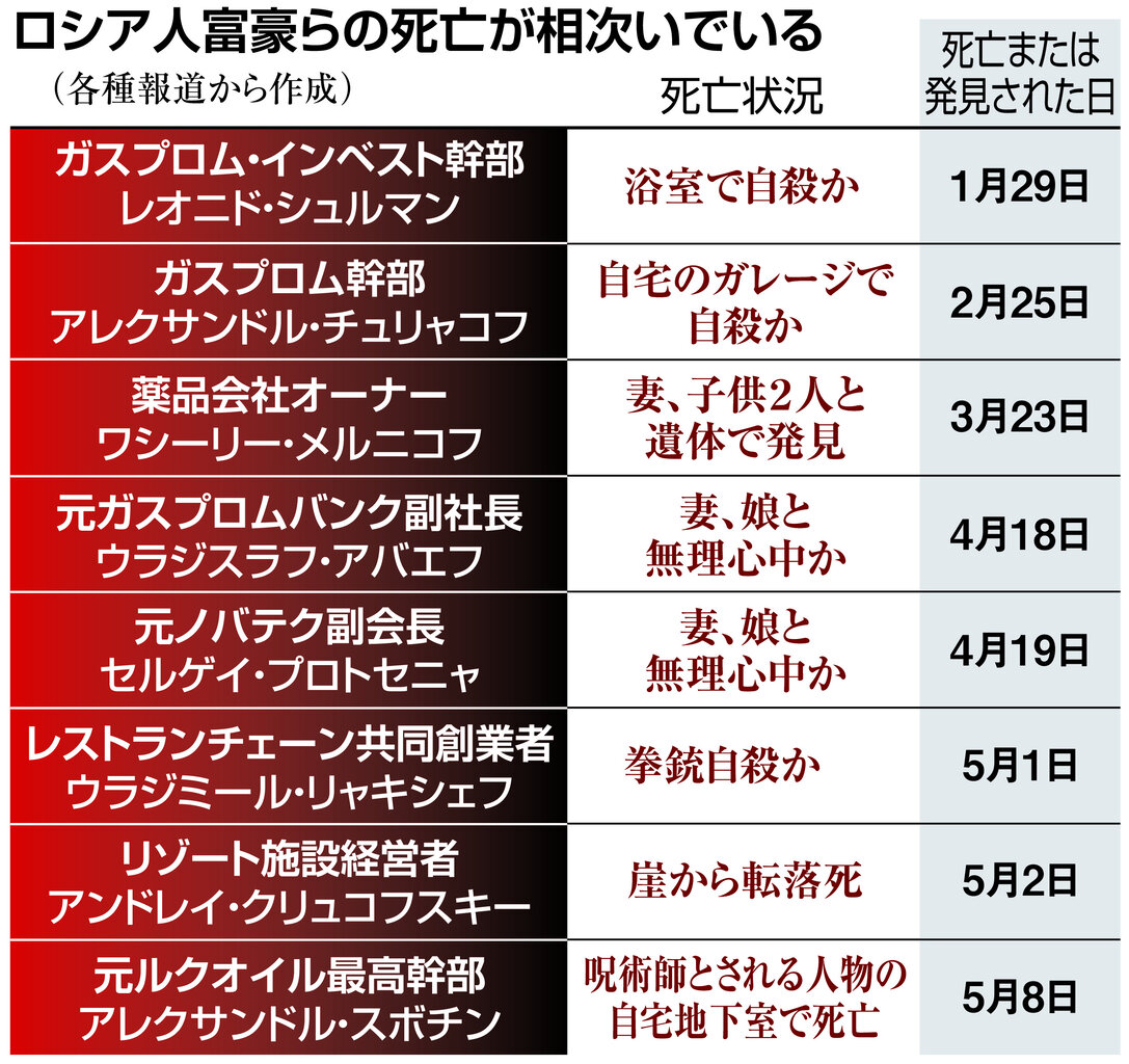 いまプーチン疑心暗鬼になって粛清激増してるやろ