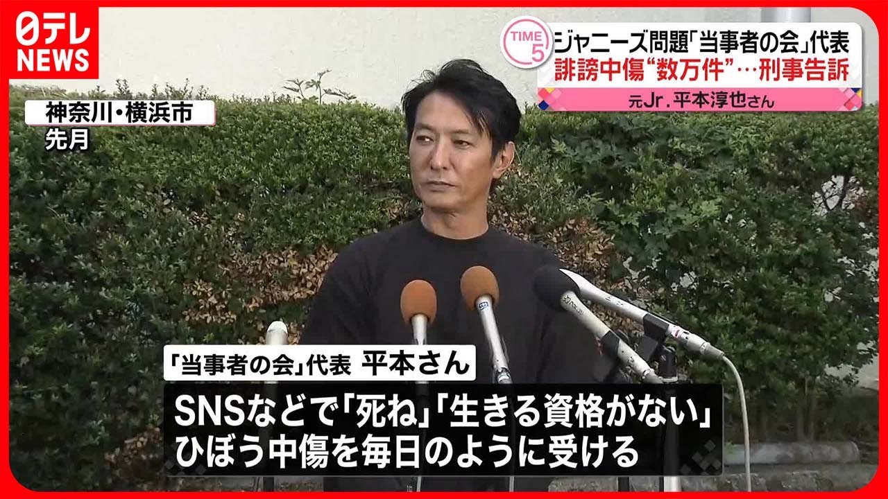 ジャニー喜多川氏による性加害問題をめぐり、被害を訴える「当事者の会」の代表の平本さんが、SNSで誹謗中傷を受け名誉を棄損されたとして、警察に告訴状を提出しました。