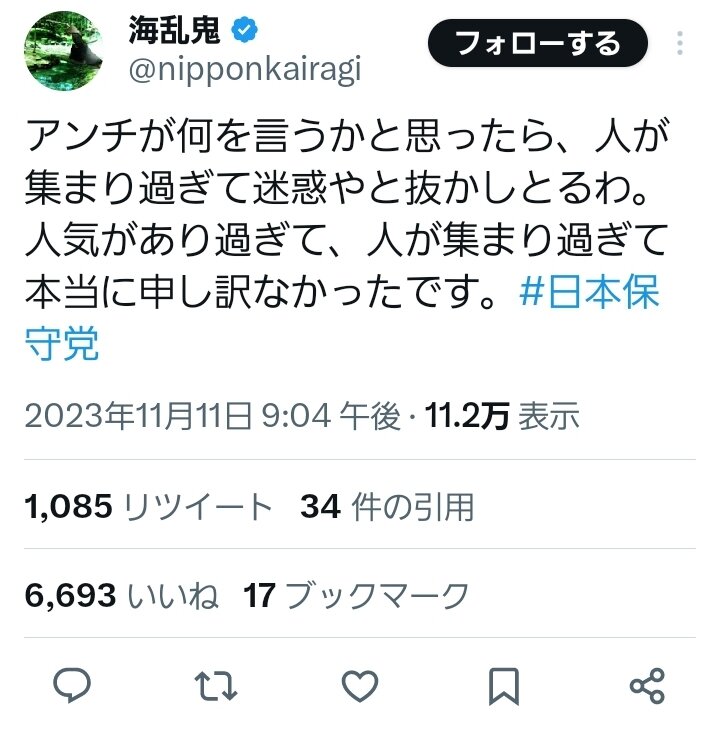 一部の日本保守党支持層がそういうの言うと人が離れるぞ(まぁ工作員がなりすまししてる可能性もあるが)。