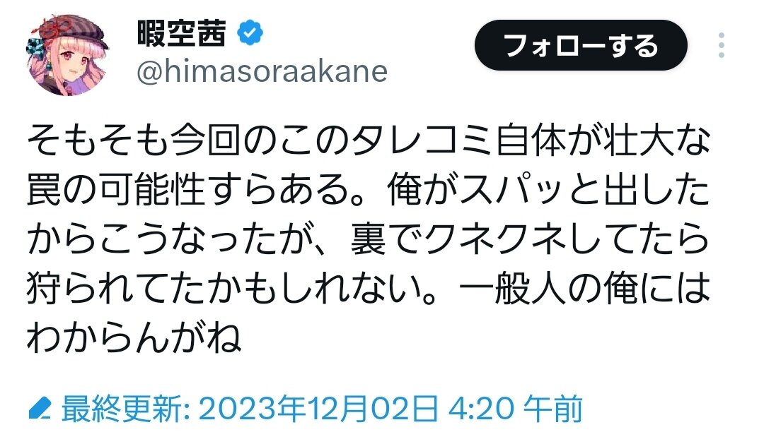 — 垣鍔垣鍔垣鍔垣鍔垣鍔@藤澤翔馬と垣鍔晶を救いたい (@hokemon0) December 3, 2023