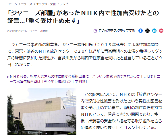 ジャニに性加害部屋を提供してたNHKがなに言ってんの?