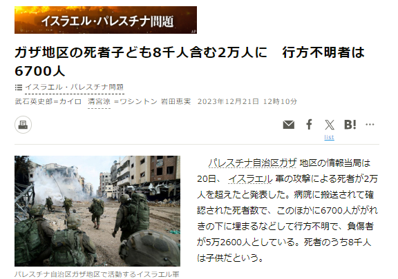訂正 ガザの死者は25000人でジェノサイド状態