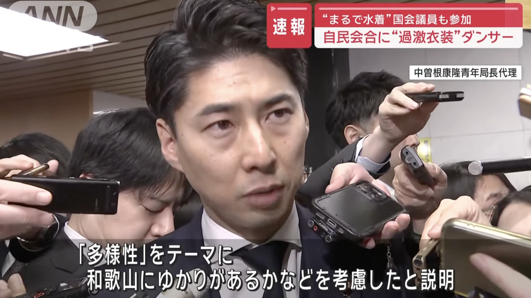 近畿の自民党若手議員らが参加した昨年11月の会合で、主管した党和歌山県連が下着と見まがうような露出の多い衣装をまとった複数の女性ダンサーを会場に招いていたことが8日、関係者への取材で分かった。産経新聞が入手した動画には、ダンサーに口移しでチップを渡す参加者の姿も。費用は党本部や県連が支出したが、公費が含まれている可能性がある。