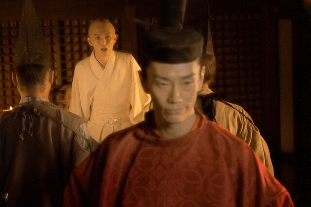 花山天皇を内裏から連れ出したのは道兼。袿(うちき、女性の上着)を羽織らせ、牛車で元慶寺へ。最愛の人・藤原よし子(よし=りっしんべんに氏、井上咲楽)の魂を鎮めるため、花山天皇が剃髪を終え「道兼、次はおまえの番だ」。道兼は一緒に出家するという約束などなかったかのように「私は、これにて失礼いたします」「お側にお仕えできて、楽しゅうございました」と立ち去った。花山天皇は「裏切り者!」と叫んだが、後の祭りだった。