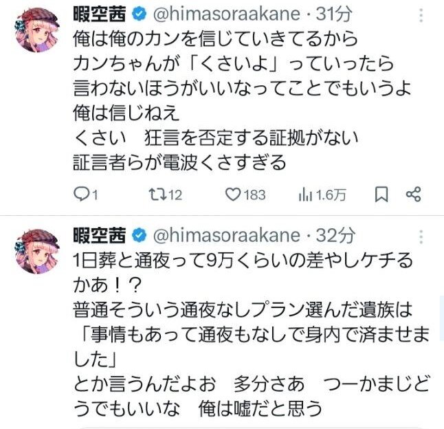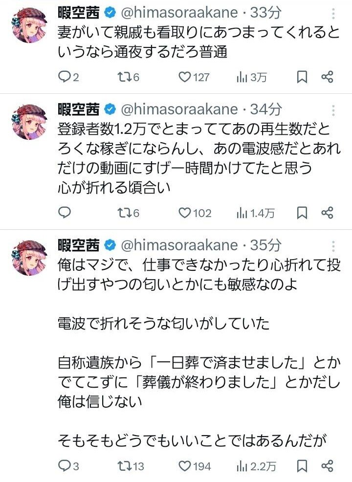 亡くなったなんて嘘だろ、儲からねえから辞めただけとか冷然と宣う暇空に怒り沸いたわ