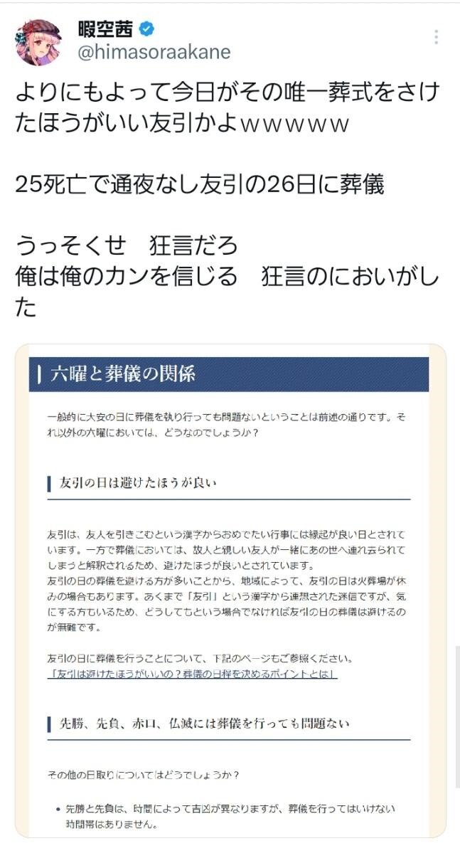 葬儀でVTuberかつ暇アノンだった事が遺族に晒されるんか