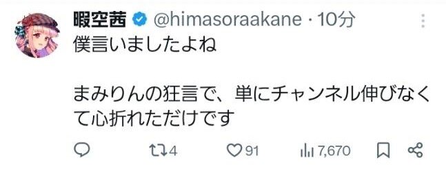 暇空茜さんにとってはこの人もゲームの1キャラ程度に過ぎなかったんかね