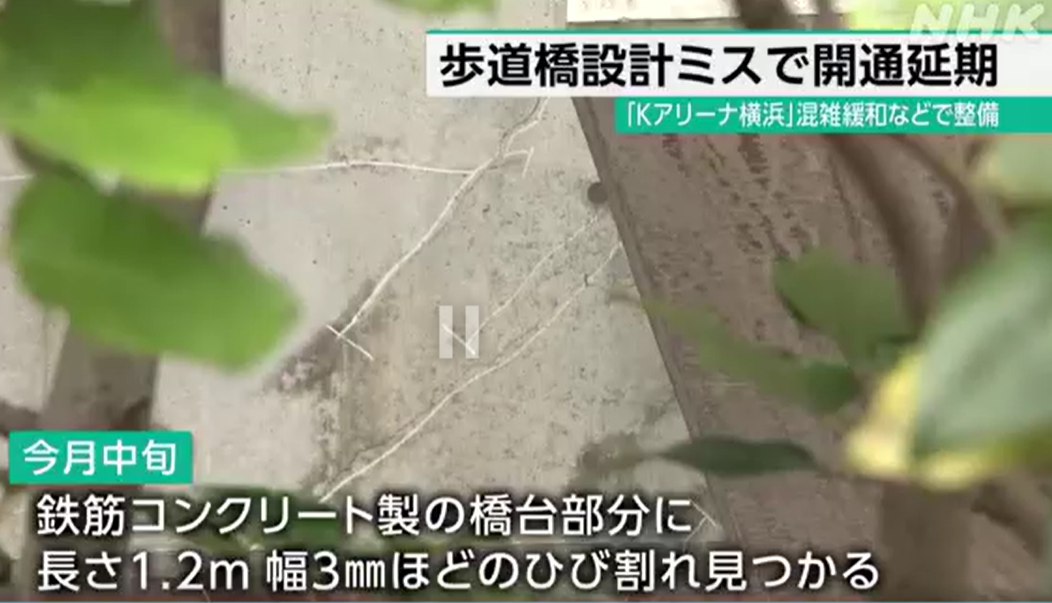 横浜市は、みなとみらい地区にある「Kアリーナ横浜」の混雑緩和などのために整備した歩道橋で、設計ミスによる強度不足などが明らかになったとして1日予定されていた開通を急きょ延期することにしました。