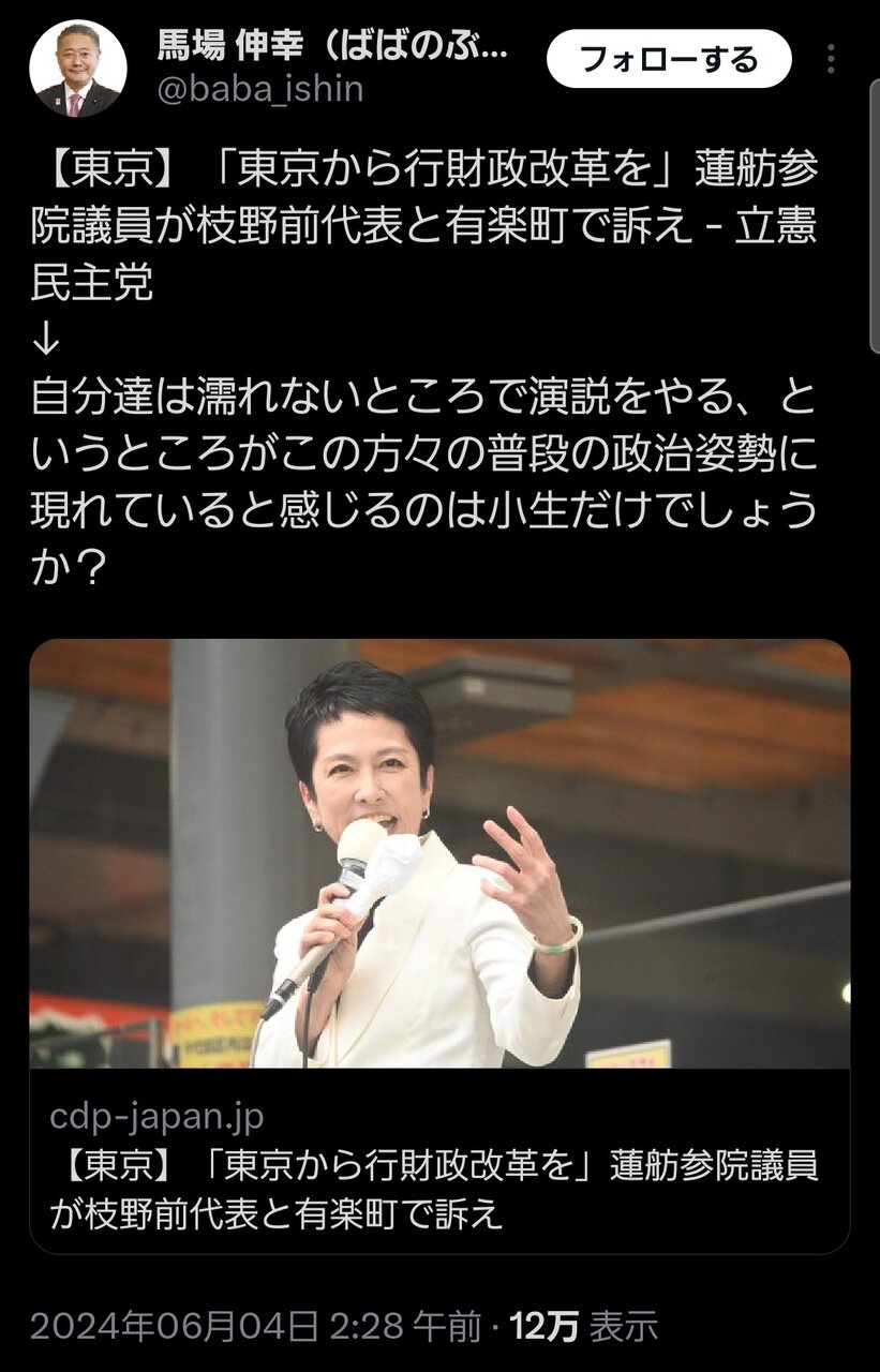 黙っていたほうが立憲支持者の格式は下がらんと思うよ、お前。