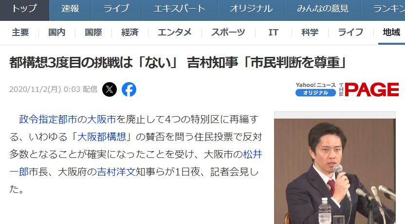 大阪市の名前がなくなるから否決やぞ。