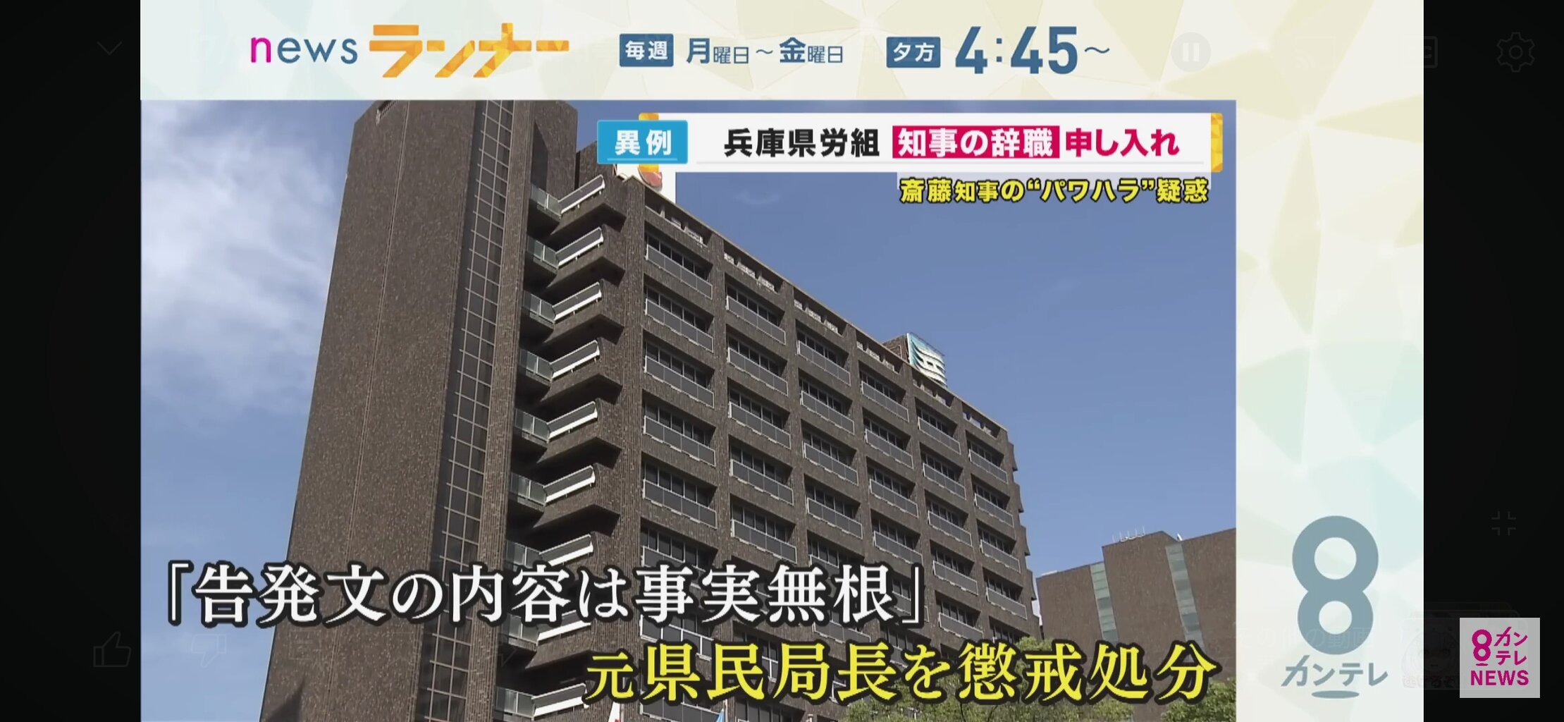 辞職表明の副知事からは知事はコミュニケーション不足、初動対応の失敗を挙げた上で逃げられてるし、仮に文書が100%無実でもなければ詰み、1期で終わる可能性が高まった