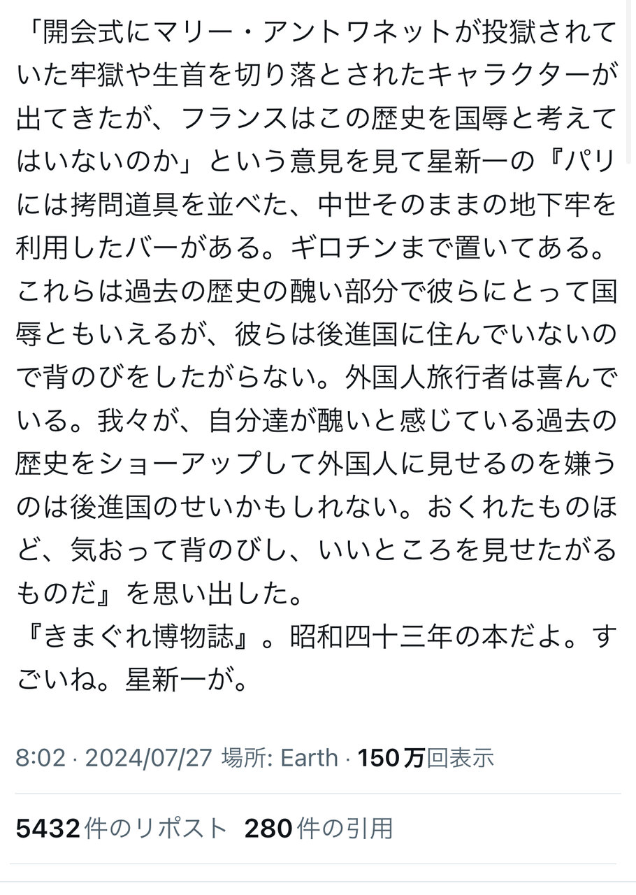 フランス革命やLGBTを称揚する一方でアジア人は特に差別するしオーストリア人のマリーアントワネットの首を掲げる社会が文明的とかなんの冗談なのか