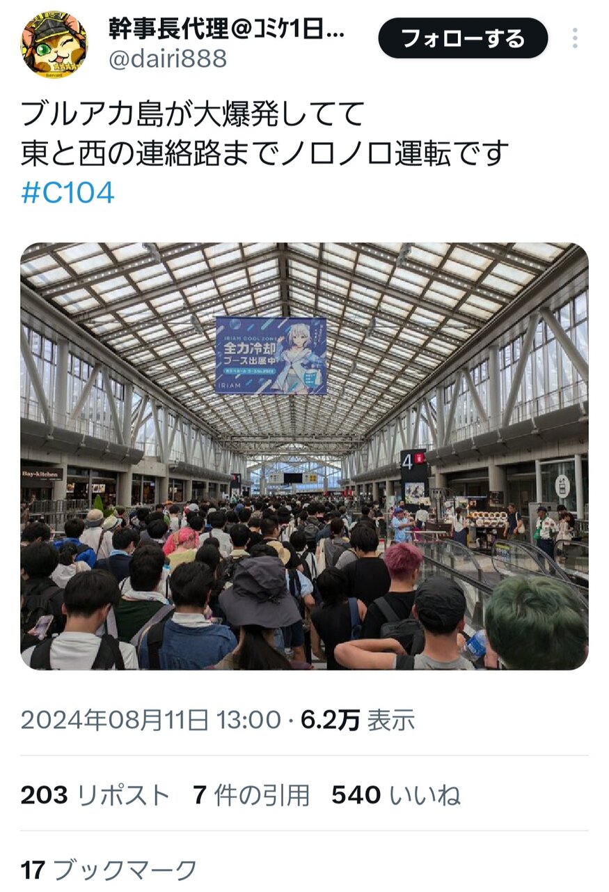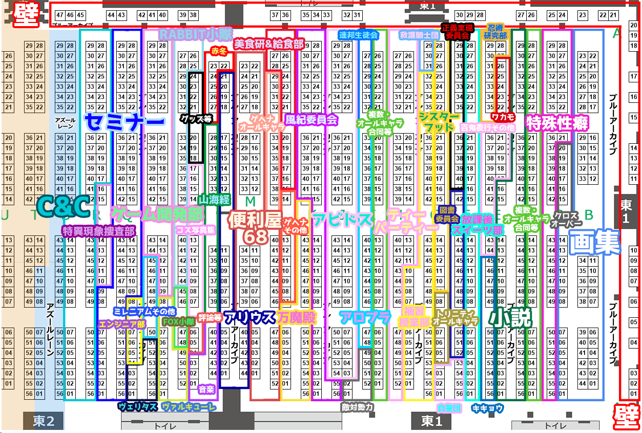 ブルアカが圧巻の1922サークル(200増)で1位、東館の半分がブルアカになる! Vtuberは1457(135減少)! ウマ娘830(50減)、型月687(143減)、艦これ520 (130減)、アイマス654(154減)、東方674(96減)