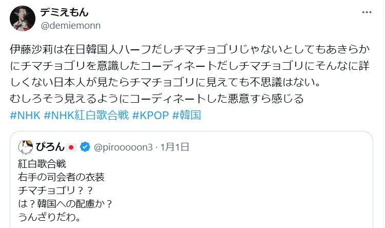それはそれとしてチマチョゴリには流石に見えんかったしチマチョゴリだったとして何が問題なんだという話
