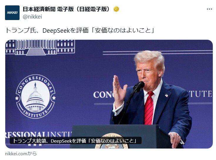 deepseekの話が出たらいきなりサイバーテロがアメリカ発で引き起こされているような事になっているし、相当衝撃的だったのかと