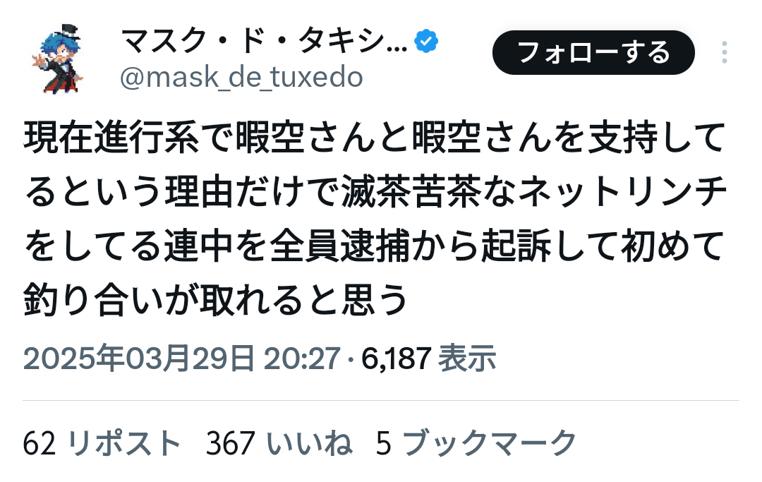 コレが米国やったら通称暇空茜法が起案されていてもおかしくは無いやろ。