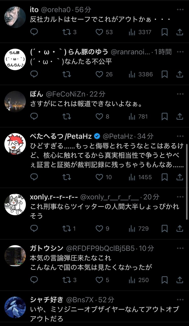 例えば一人が一人にDMで死ねって一回言っただけでは刑事起訴にはなり得ない