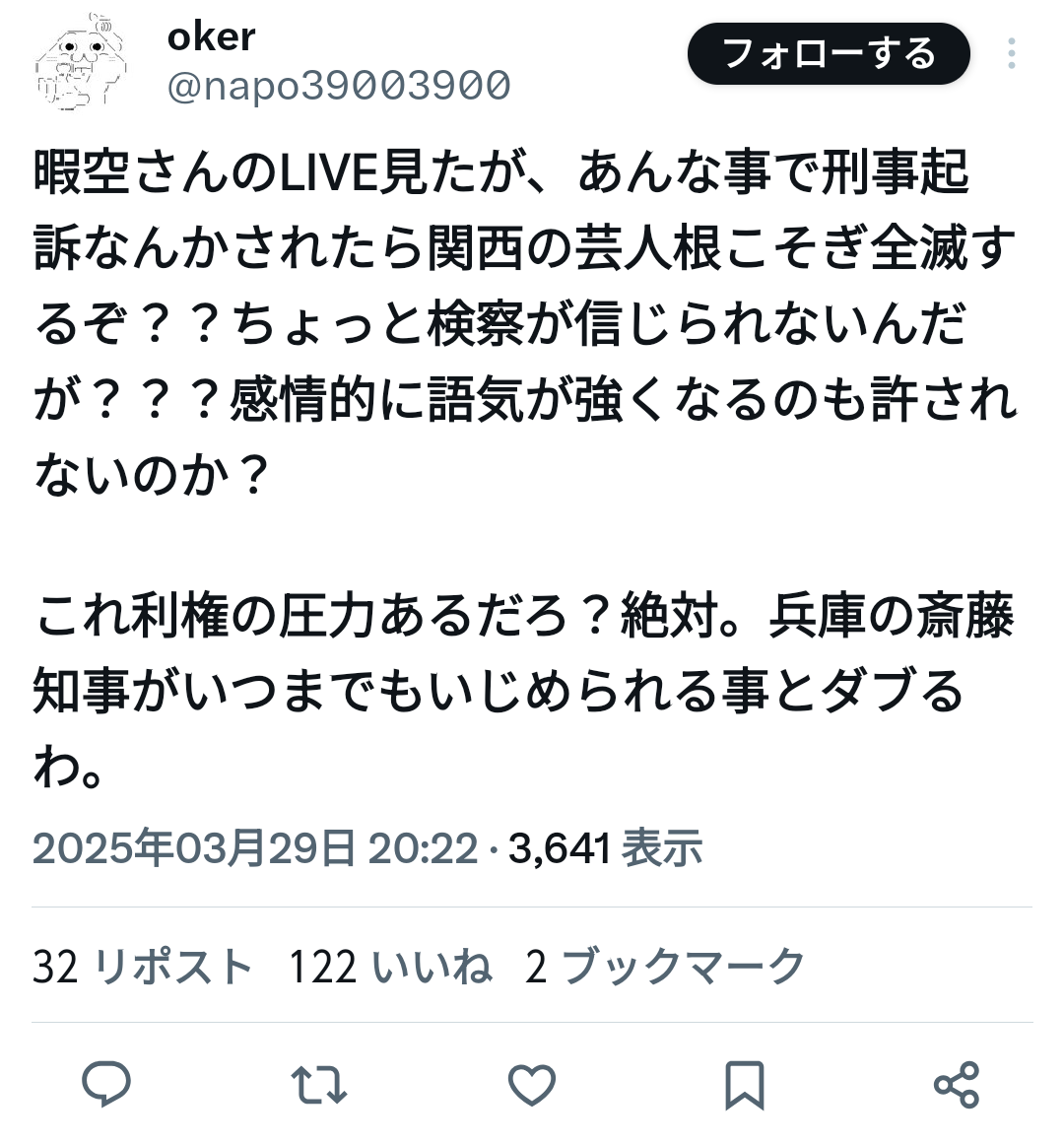 暇空信者と斎藤信者って似てるとこあるなと思ってだけど兼任してそうやな