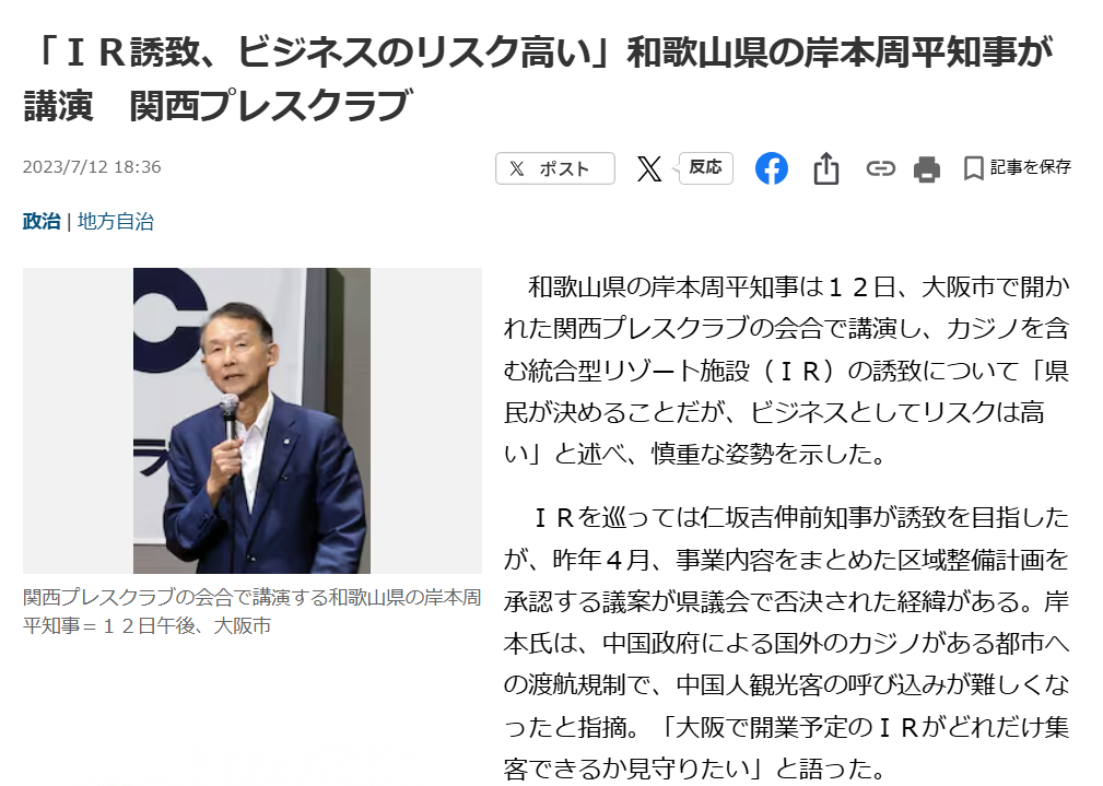 まぁ、本気でカジノを産業として確立させる気と能力があるなら良いが維新には、それがないからね。